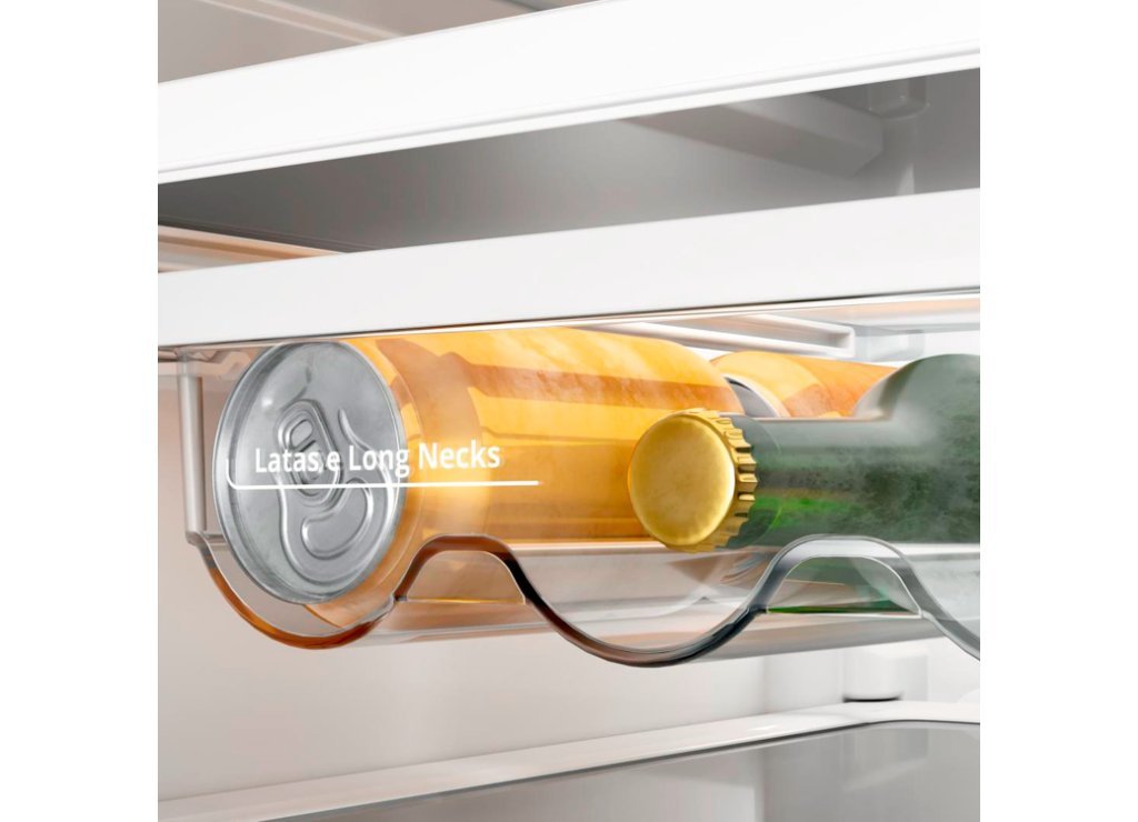 • Prateleira Multiuso Retrátil: Permite acomodar garrafas altas, sem perder organização.