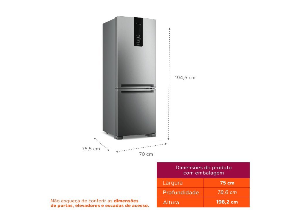O visual da Geladeira Brastemp Inverse BRE58FK é um de seus grandes atrativos. Com linhas retas e portas em inox escovado, ela se integra facilmente a cozinhas planejadas e ambientes gourmet. O acabamento em inox anti-fingerprint minimiza marcas de dedos e manchas, mantendo o aparelho sempre com aspecto de novo.